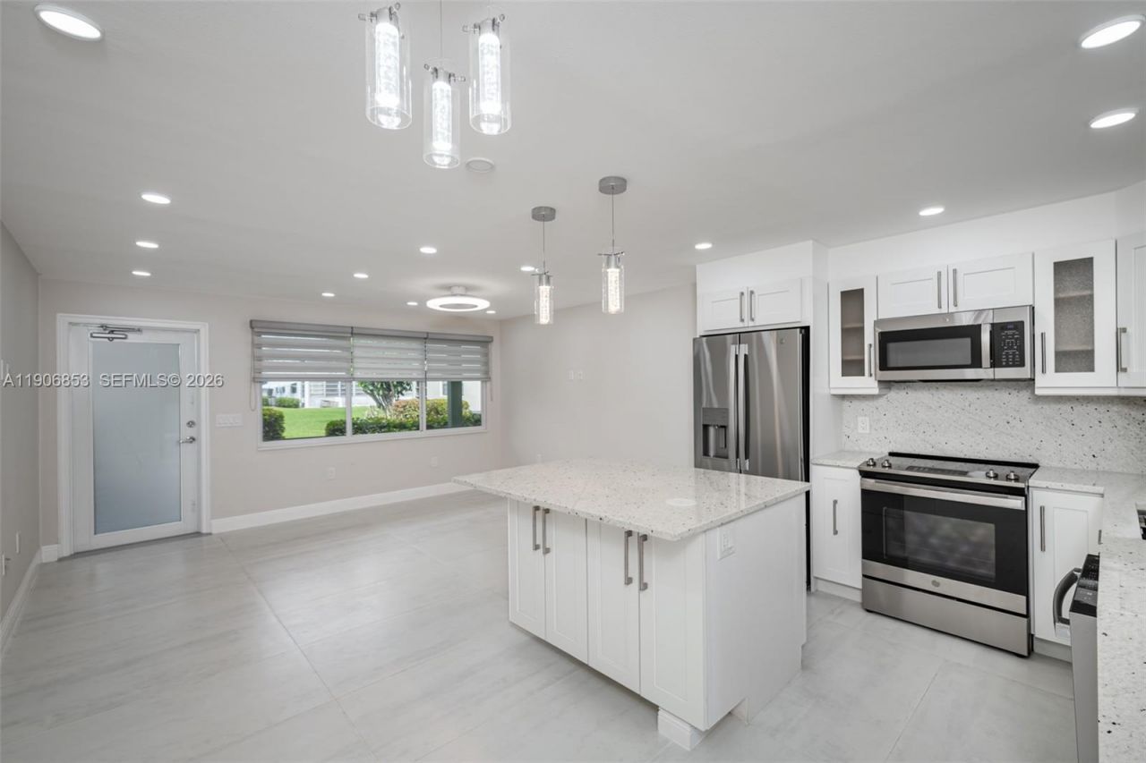 A rare gem in a vibrant 55+ community! This one-of-a-kind one bedroom, first floor apartment is now available for sale. The property boasts a meticulous and comprehensive renovation, spanning from the drywall to the ceiling, showcasing impeccable attention to detail. The home features a brand-new AC system, impact-resistant windows and door, and a tankless water heater The kitchen is a true showstopper with granite countertops, stainless steel appliances, and a center island. The bathroom has curbless shower and shower tower. The extended bedroom features a custom closet system, zebra shades blinds. Plenty of storage, built in pantry, remote fans and much more! Welcome to Century Village, Deerfield Beachs Active 55+ adults gated community. Features: clubhouse, with indoor & outdoor pools, live shows, fitness center, tennis courts, shuffleboard, volleyball, bocca ball, pickle ball. Convenient in-house bus transportation to local malls, shopping centers and medical facilities. Close to the Beach, restaurants, and shops.