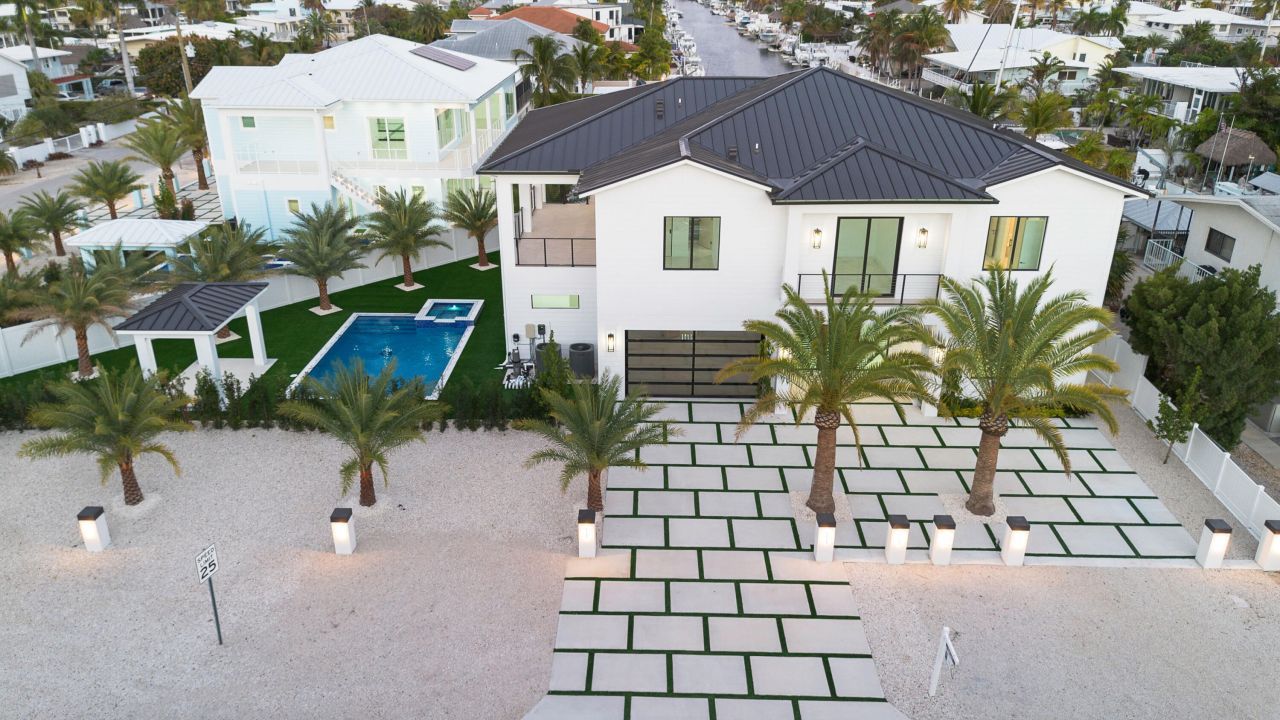 Stunning brand-new waterfront estate offering 6 bedrooms and 8 bathrooms with modern designs and luxury finishes throughout. The gourmet kitchen features premium Sub-Zero appliances and flows seamlessly into spacious living and entertaining areas. Built for long-term durability with a metal roof, solar panels, and a water cistern system. Enjoy resort-style outdoor living with a custom pool, covered lounge areas, and a 65-foot private dock with a garage and tackle room, perfect for boaters and fishing enthusiasts. Experience the best of modern waterfront living in Key Largo.