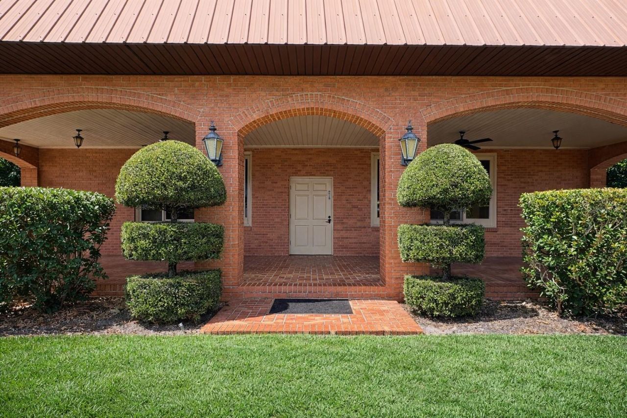 Stunning 4 bedroom, 4 bathroom pool home on over 1 acre with private pond views-offering space, privacy, and unique character you won't find anywhere else. This beautifully maintained property combines solid construction, thoughtful updates, and versatile living spaces, making it ideal for both everyday living and entertaining.The home features an expansive 43x23 great room with 10-foot ceilings, a cozy fireplace, built-in bar, and large windows showcasing serene water views. Originally built with commercial-grade standards and later used in part as a place of worship, the home includes distinctive architectural details and custom built-ins that add charm and functionality throughout.The updated kitchen includes upgraded appliances, quality cabinetry, Corian countertops, and a stylish tiled backsplash. A split-bedroom layout provides privacy, including a bedroom with its own private entrance-perfect for an in-law suite, guest quarters, or home office.Step outside to your private backyard oasis featuring a screened-in pool and spa, beautiful paver deck, outdoor shower, and fully fenced yard. The expansive covered patio and impressive 60+ foot front verandah with brick flooring and arched openings with multiple spaces to relax and enjoy peaceful pond and nature views.Additional highlights include updated bathrooms, newer roof, dual-zone A/C systems, and updated windows for added comfort and efficiency.Located on two adjoining parcels, this property offers over an acre of land with endless potential-perfect for those looking for a private retreat, multigenerational living, or a unique property with character.Don't miss this rare opportunity to own a pond-front pool home with acreage and unmatched charm.
